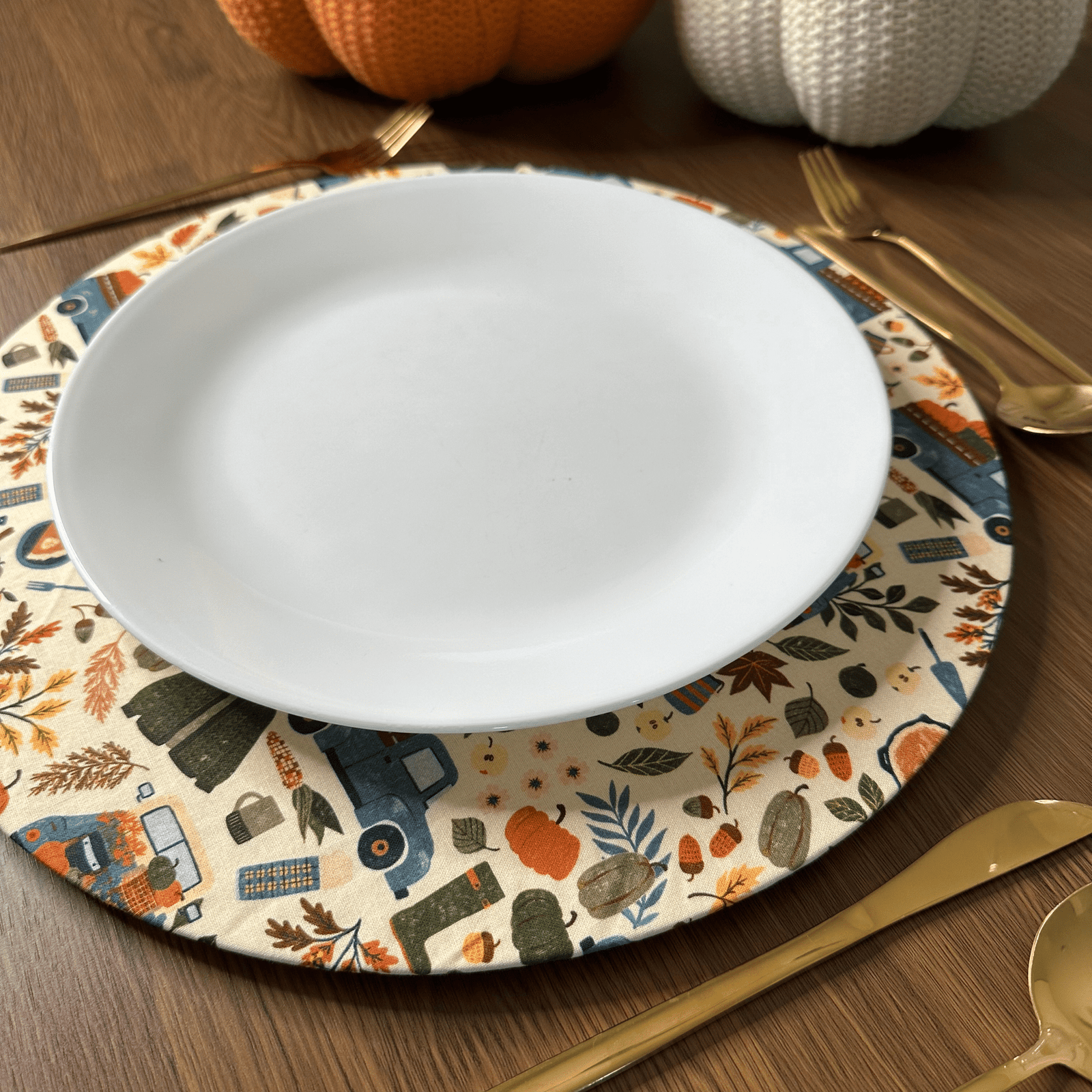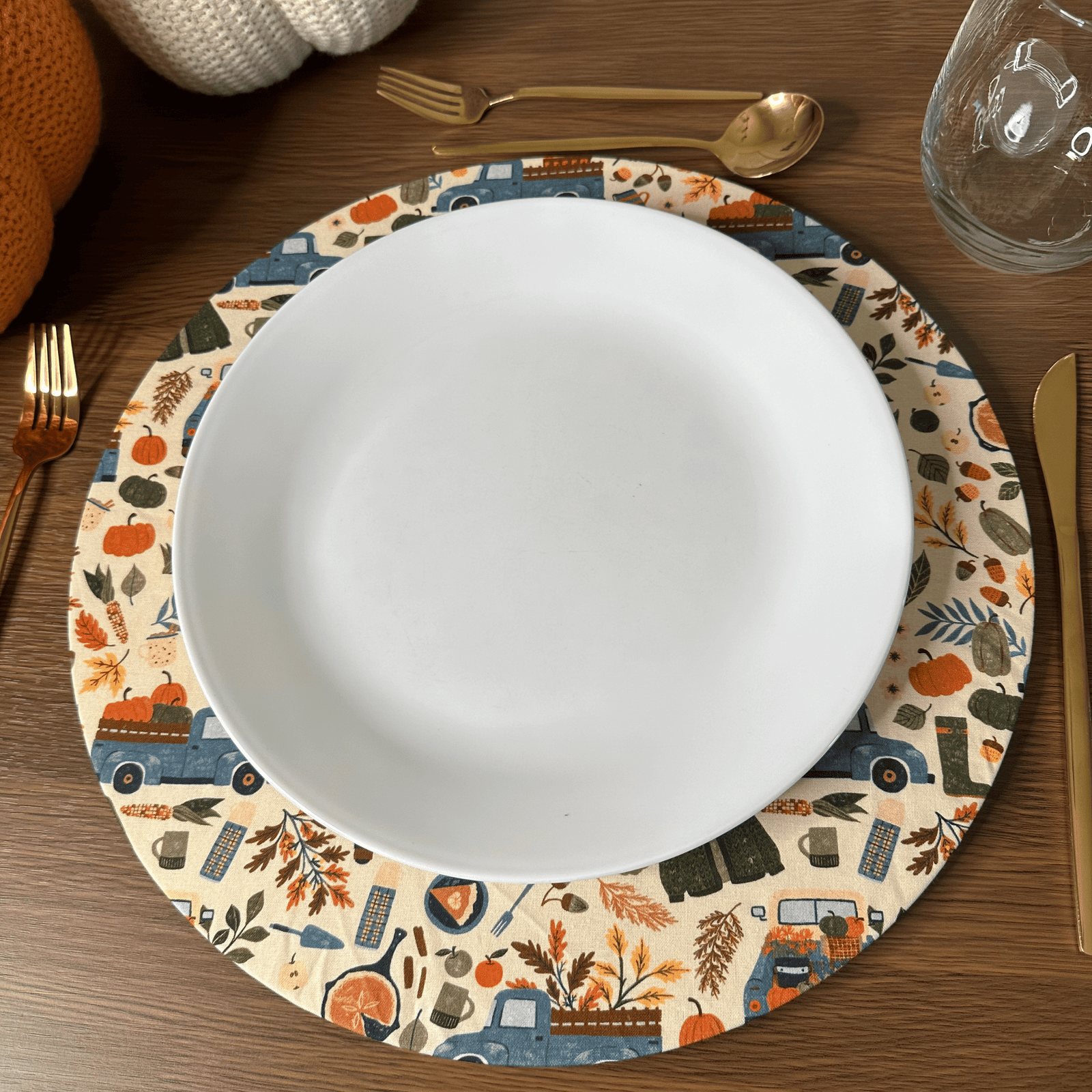 Blue Truck Thanksgiving Charger Plate Cover – Set of 4