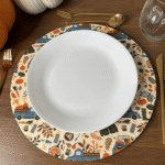 Transform your fall table into a cozy, elegant scene with this charger plate cover designed specifically for Thanksgiving. Rich in autumn colors and decorated with a festive seasonal motif, it adds warmth and charm to every place setting—perfect for family gatherings and holiday dinners.